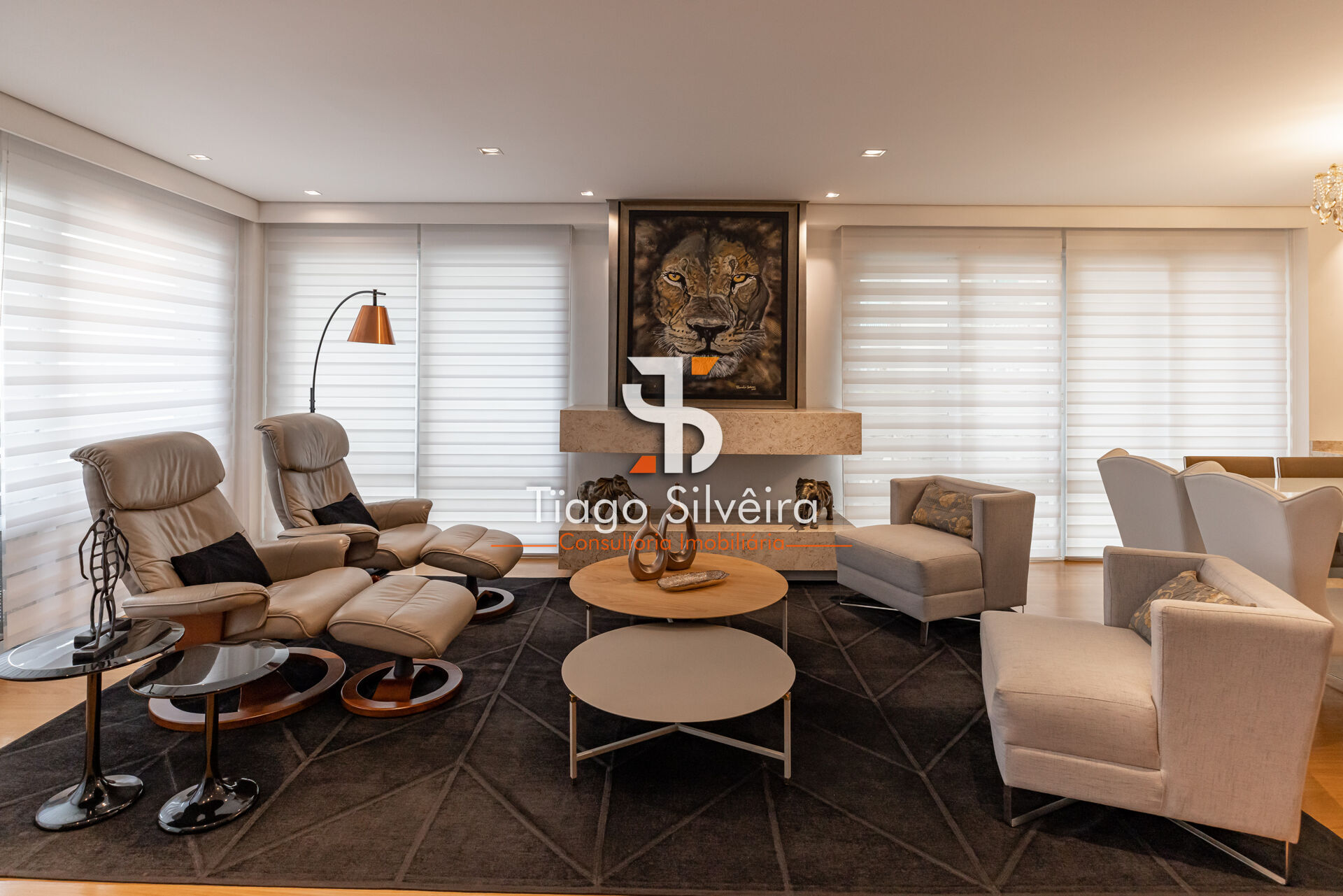- Amplo living integrado com salão de estar e jantar, com lareira aconchegante e acesso a sacadas com vista privilegiada.