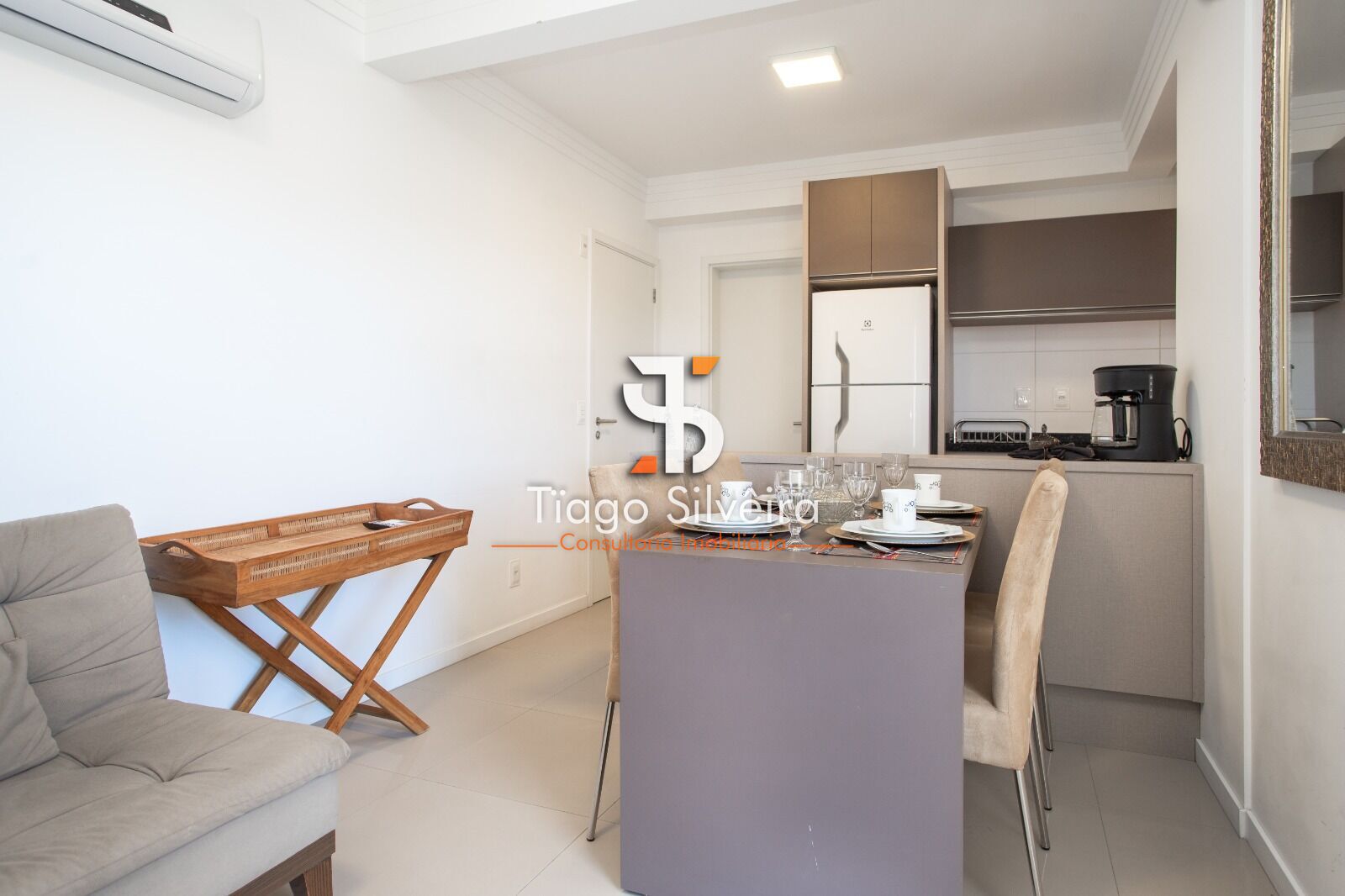 O imóvel conta com 2 dormitórios, sendo 1 suíte, sala de estar e jantar integradas, sacada com churrasqueira e vista para a UFSC, banheiro social com ventilação natural e aquecimento a gás. Permanecem no apartamento todos os móveis e eletrodomésticos, saindo apenas objetos pessoais.