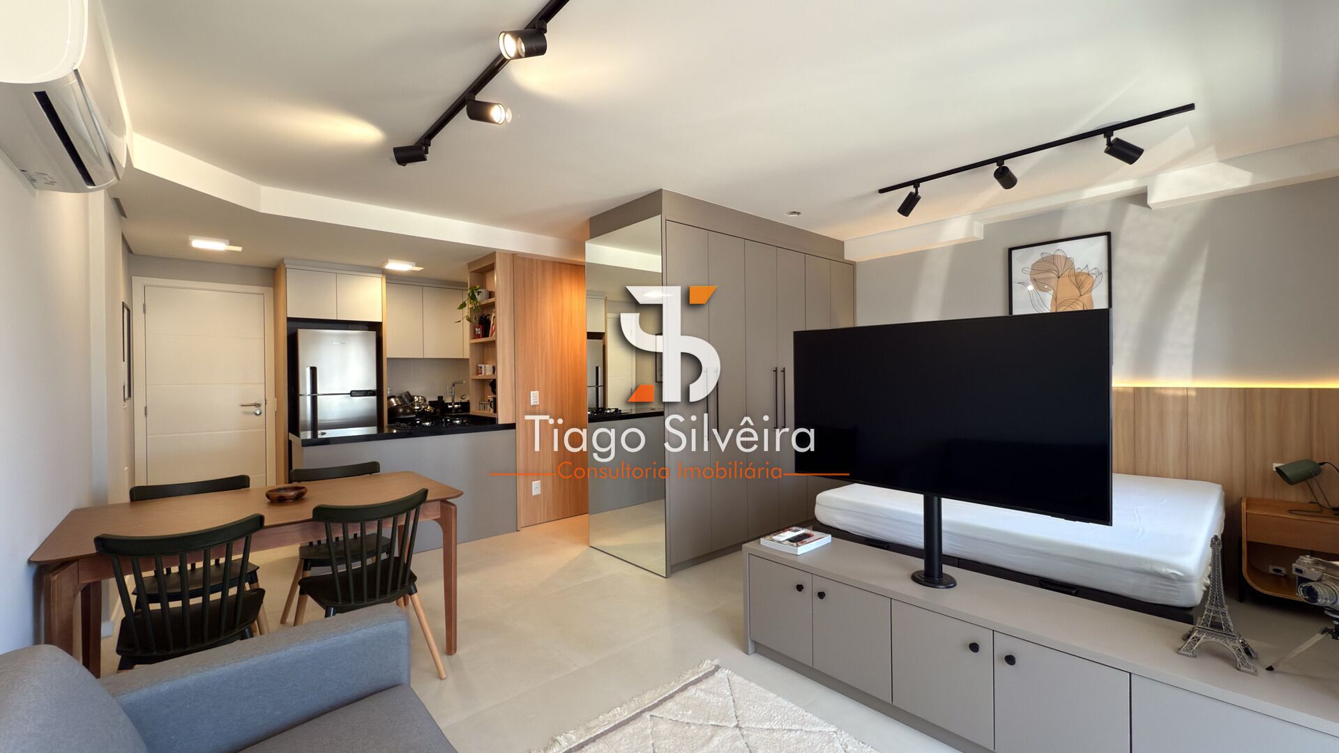 - Layout inteligente com ambiente integrado (cama, sofá, ar-condicionado)